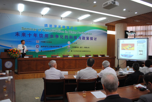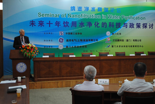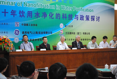 早在1999年时任福建省省长的习近平来厦门大学调研时就指出:“膜技术是世界公认的21世纪绿色、节能的高科技产业技术”。膜技术在微滤、超滤、纳滤、反渗透等水净化工艺中正在发挥越来越大的作用。本次高端论坛特邀美国GE公司水与工艺技术总工程师Peter Eriksson博士、中国膜工业协会名誉理事长、国家液体分离膜工程技术中心首席科学家高从堦院士、新加坡国立大学李光耀公共学院特约研究员、国家发改委水政策专家杨尚宝教授、华中科技大学同济医学院公共卫生学院饮用水安全与环境毒理学专家吴志刚教授、中国膜工业协会副理事长、厦门大学水科技与政策中心首席科学家蓝伟光教授齐聚厦大,共同探讨了未来十年膜技术在解决饮用水问题中的地位和作用。