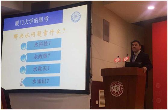 在闭幕式上,蓝伟光教授作为大会遴选的六位专家之一为全体大会出席代表作了一个题为“利用绿色科技解决中国的水问题”的主题演讲,针对中国面临的水问题及其传统的调水思维与路径依赖, 提出了科普水知识、唤醒水意识、呼吁水政策、应用膜技术、实现水循环、保障水安全、化解水危机的新思路,以期解决中国的水问题、实现绿色与创新的转型。蓝伟光教授的报告受到了与会领导、专家、学者的热烈欢迎,引起了积极反响。厦门大学水科技与政策研究中心也藉此机会在中国大学智库论坛正式登台亮相,受到了广泛关注与重视。