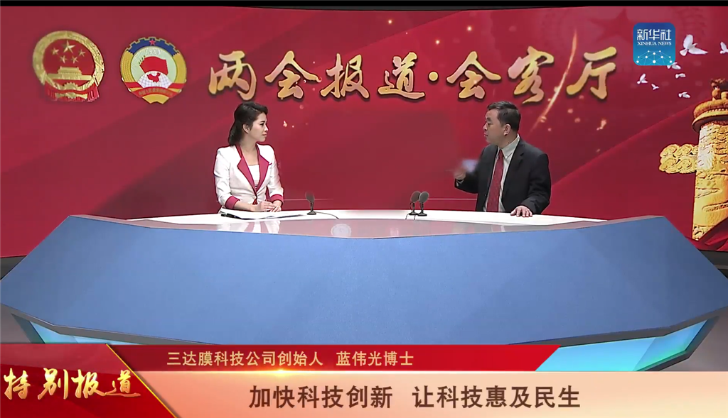 正值十三届全国两会召开,舆论聚焦民生与环保问题。蓝伟光博士作为厦门大学水科技与政策研究中心首席科学家、中国膜工业协会副理事长、三达膜科技公司创始人受邀做客新华社 “两会报道•直播间”,席间蓝博士畅谈科技与民生、科普净水知识、介绍膜产业的发展与应用,说明真净水与纯净水的差别,告诉公众如何选择净水器等等,以保障民生健康,为中国乃至世界的饮水安全与健康问题提供新方案。