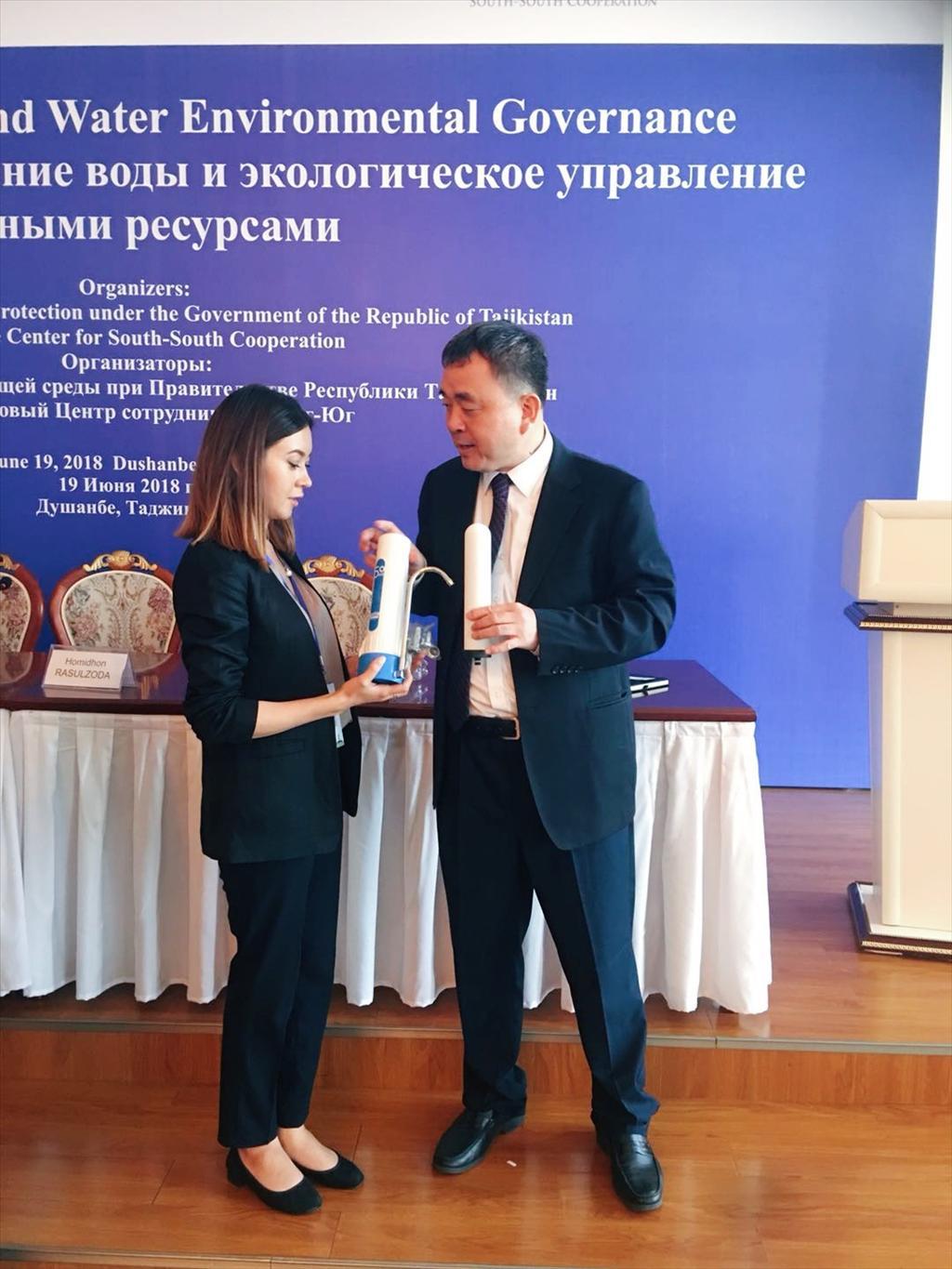 蓝伟光教授向塔吉克斯坦环境保护部的官员介绍三达纳滤芯技术