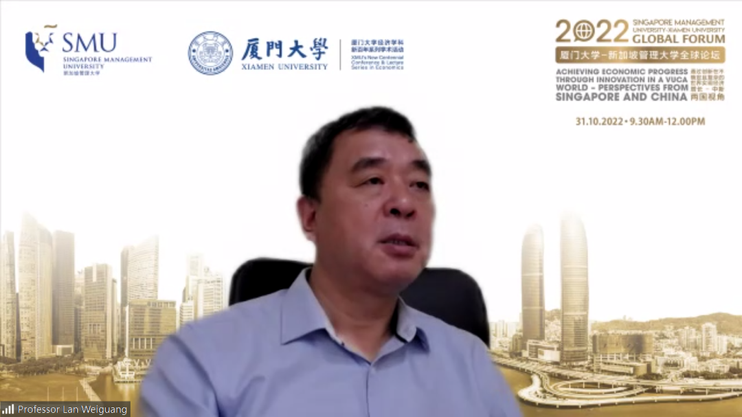 厦门大学—新加坡管理大学全球论坛旨在分享中国和新加坡在由创新实现经济可持续增长方面的见解和经验。两国为过渡至创新驱动型的经济增长而做出的努力面临着全球疫情、通货膨胀率上升和气候变化带来的挑战。因此,我们在关注长期政策措施的设计以激励创新的同时,也需要采取短期措施以应对面前的挑战。