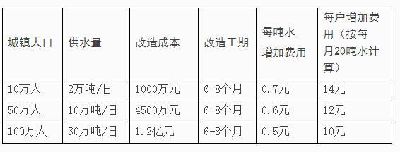 很多自来水厂不愿意改造,除了怕麻烦,另外一个理由是害怕改造成本太高,会造成水价猛涨。其实,我们测算过,在国家不补贴的情况下,将现有自来水处理工艺从第一代直接升级到第四代,每吨成本最高才增加0.7元,一个三口之家,按毎月用水20吨计算,即使财政不予任何补贴,每月増加15元的成本,在当前的物价条件下,相信大家都可以接受。